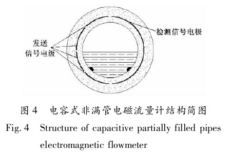 ②電容式非滿管軟化水流量計h。電容式非滿管軟化水流量計結(jié)構(gòu)簡圖如圖4所示。、檢測信號電極 發(fā)送信號電