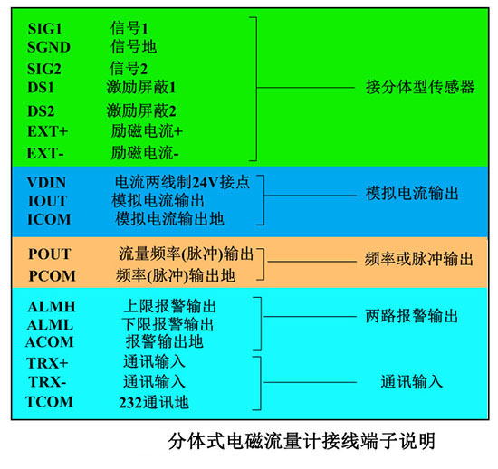 一體型鹽酸流量計接線端子分布圖