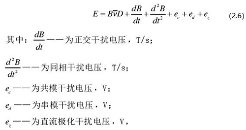 從上圖 2.5 中可以觀察到兩個電極、勵磁線圈、轉(zhuǎn)換器內(nèi)阻之間形成了一個閉合回路,將此回路稱之為初級繞組,從理論上進行分析,磁力線 B 應(yīng)當平行于勵磁線圈所產(chǎn)生的磁感應(yīng)線,但在實際的應(yīng)用過程中由于工藝差異,因此無法達到理想狀態(tài),會產(chǎn)生磁力線穿過勵磁線圈磁感應(yīng)線的情況,此時將會產(chǎn)生相應(yīng)的感應(yīng)電動勢,將此部分感應(yīng)電動勢稱為變壓器效應(yīng)。此效應(yīng)同樣滿足于楞次定律,利用楞次定律進行計算可得如下電動勢: