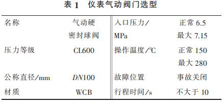 1) 空氣流量計出口管線總閥泄漏無法在線處理,導(dǎo)致氣化爐停車。在入氣化爐根部增加 2 臺儀表氣動閥門,要求每月進行 2 次開、關(guān),防止閥門出現(xiàn)卡塞現(xiàn)象。 新增 2 臺儀表氣動閥門相關(guān)參數(shù)見表 1。