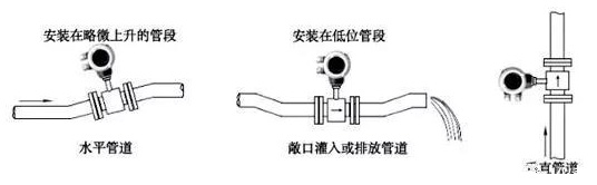 選擇充滿液體的直管段,如管路的垂直段(流向由下向上為宜)或充滿液體的水平管道(整個(gè)管路中*低處為宜),在安裝與測量過程中,不得出現(xiàn)非滿管情況。