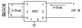 3)變送器與安全柵本安端的連接電纜為二芯屏蔽電纜,芯線截面積>0.5 mm2,電纜允許分布電容為0.8uF。